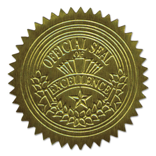 Self-Adhesive Embossed Seals, 2" dia, Gold, 20/Sheet, 5 Sheets/Pack