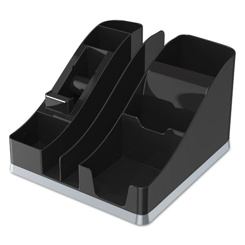 Silhouettes All-In-One Caddy, 6 Compartments, Plastic, 8.13 x 9.13 x 5.19, Black/Silver