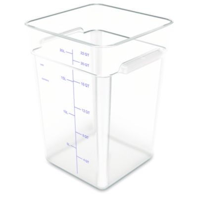 Squares Polycarbonate Food Storage Container, 22 qt, 11 13 x 11.13 x 15.72, Clear, Plastic