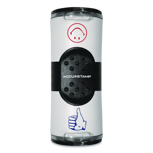 Dual Message Pre-Inked Round Stamp, Smiley Face/Thumbs-Up, 0.63" dia, Red/Blue