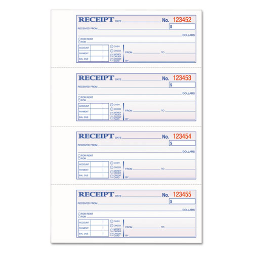 tops 3-part hardbound receipt book, three-part carbonless, 7 x 2.75, 4 forms/sheet, 200 forms total
