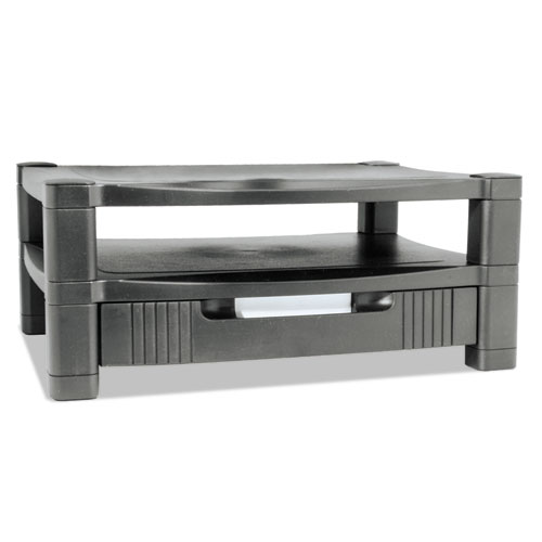 Two-Level Monitor Stand, 17" X 13.25" X 3.5" To 7", Black, Supports 50 Lbs