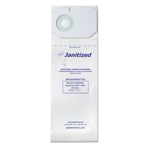 vacuum filter bags designed to fit nilfisk carpetwin upright 16xp/20xp, 100/carton