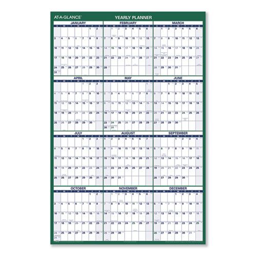 Vertical Erasable Wall Planner, 32 x 48, White/Green Sheets, 12-Month (Jan to Dec): 2024
