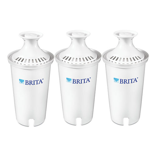 Keep tap water healthier and tasting better when you regularly change your Brita replacement filter. Made to fit all Brita pitchers and dispensers, this replacement filter reduces copper, mercury and cadmium impurities that can adversely affect your health over time, while cutting chlorine taste and odor to deliver great tasting water. Designed to leave no black flecks in your water and with no pre-soak required, the Brita filters are quick and easy to use. Change your Brita filters every 40 gallons or approximately two months for best performance. Ideal for use in restaurants, cafeterias and other commercial facilities. Start drinking healthier, great tasting water with Brita today.