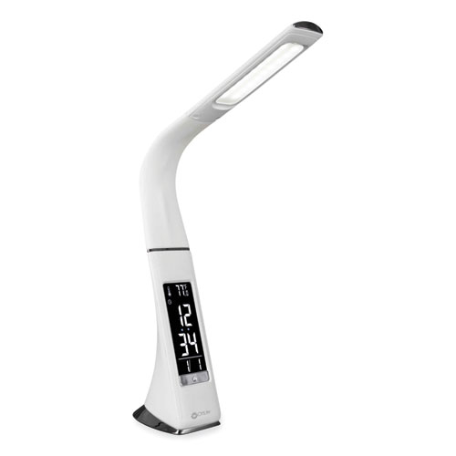 OttLite brings the eyestrain-reducing power of ClearSun® LED technology together with the patented sanitizing power of SpectraClean™ visible light disinfection to provide the ultimate healthy light. Simply turn on the OttLite Thrive LED Desk Lamp with Clock to begin sanitizing your space against potentially harmful bacteria, mold and fungi. This flexible lamp adjusts from 10" to 18.75" and features an LCD screen that displays date, time and ambient temperature. Plus, the built in USB charging port keeps your devices charged.