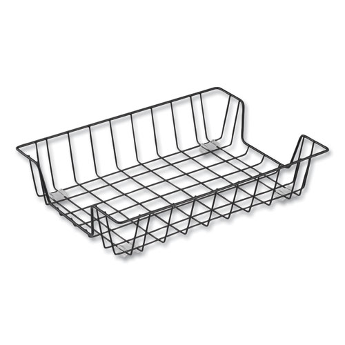 Keep your workspace organized with this letter-size tray. The open design makes it easy to access documents, notebooks or file folders, and the generous dimensions accommodate thick stacks of documents for ample storage space. Durable wire construction offers long-lasting use, and the plastic feet keep it securely in place. With its simple design and black hue, this Universal® wire-formed tray brings a classic look to your desk.